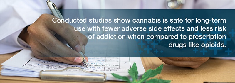 Remember, Cannabis has been used for medical reasons for hundreds of years, even by the U.S. Government, as compared to manufactured drugs of today. Medical research on Cannabis has more times than not come back as a safe and effective way to ease many kinds of suffering. Unlike many prescription drugs used for the same treatment, there are no significant withdrawal effects when Cannabis use is stopped or decreased.